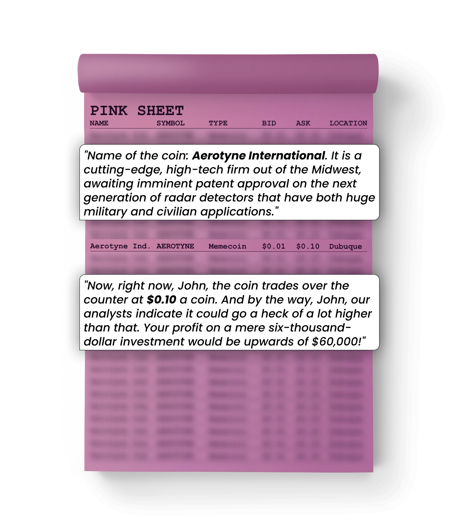 Team/AI AgentsPowerd by Virtual protocol“They're just a couple of brothers that are making radar detectors out of their garage. They're out of Dubuque. Maybe it's microwaves I'm not sure, but you call the company's mainline their mom Dorothy answers, and she is so sweet. I actually don't know anything else about them.”